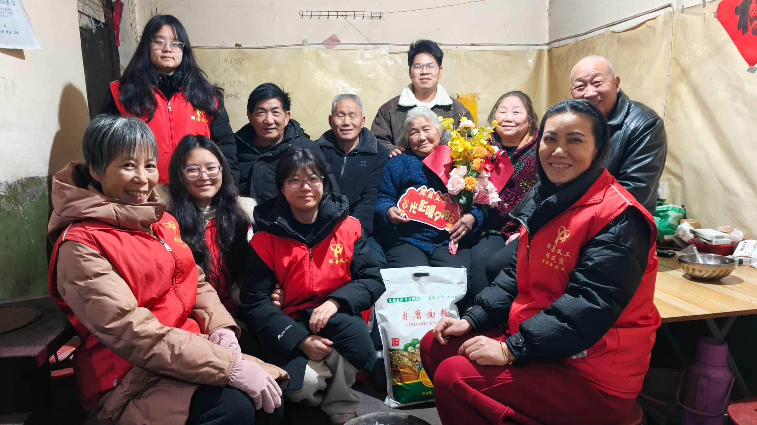 2026129日,关爱依旧如约而至。志愿者们再次带着生活必需品来到老人家中,陪伴老人、嘘寒问暖,并用镜头为老人和家人定格下一张意义非凡的全家福。镜头前,郭合英老人笑容慈祥,儿孙绕膝,红马甲的身影相伴左右,幸福的画面温暖动人。光影暖夕阳,这张全家福,是今年最特别、最珍贵的礼物,也为多年的陪伴写下最温暖的注脚。