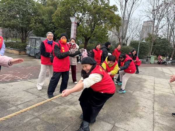 活动现场气氛热烈、欢声笑语不断。义工们积极参与原地踏步、趣味互动游戏、跳绳、踢毽子、拔河等丰富多彩的项目。大家精神饱满、热情高涨,在轻松愉快的游戏中放松身心,在默契配合的互动中增进友谊。无论是轻盈跳跃的跳绳、灵活翻飞的毽子,还是齐心协力的拔河比赛,每一个项目都充满了活力与欢乐,充分展现了义工们健康乐观、昂扬向上的风采。